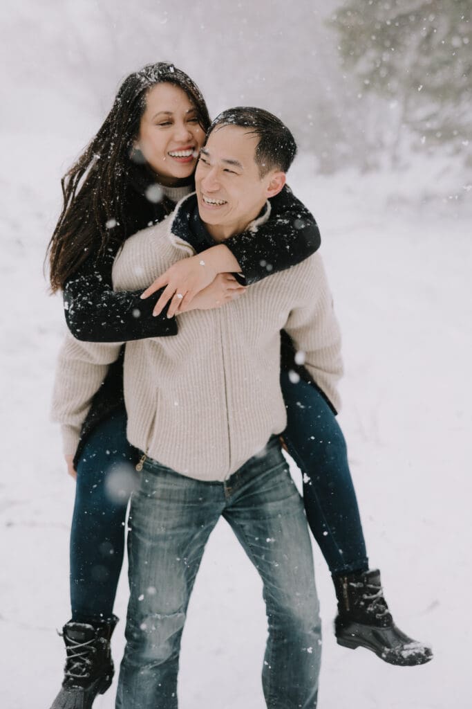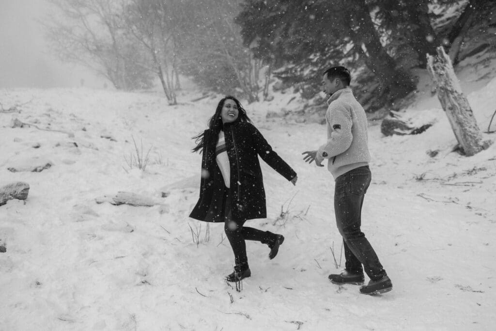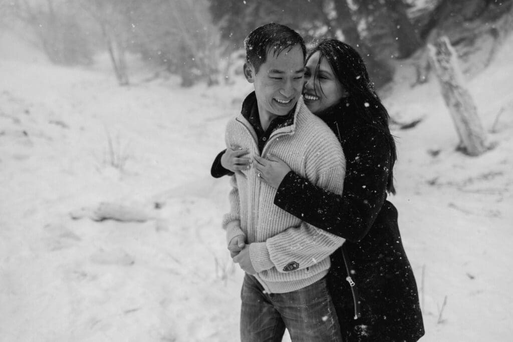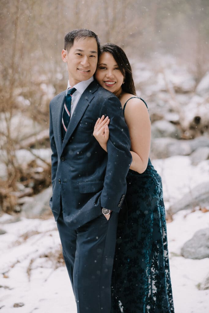 Every detail of this winter engagement was a tribute to their relationship. The contrast of the tall trees against the fresh snow highlighted their modern, outdoor aesthetic. Nancy and Eric’s session proves that you don’t need a grand venue when you have the raw beauty of nature and a “winter wonderland” vibe.