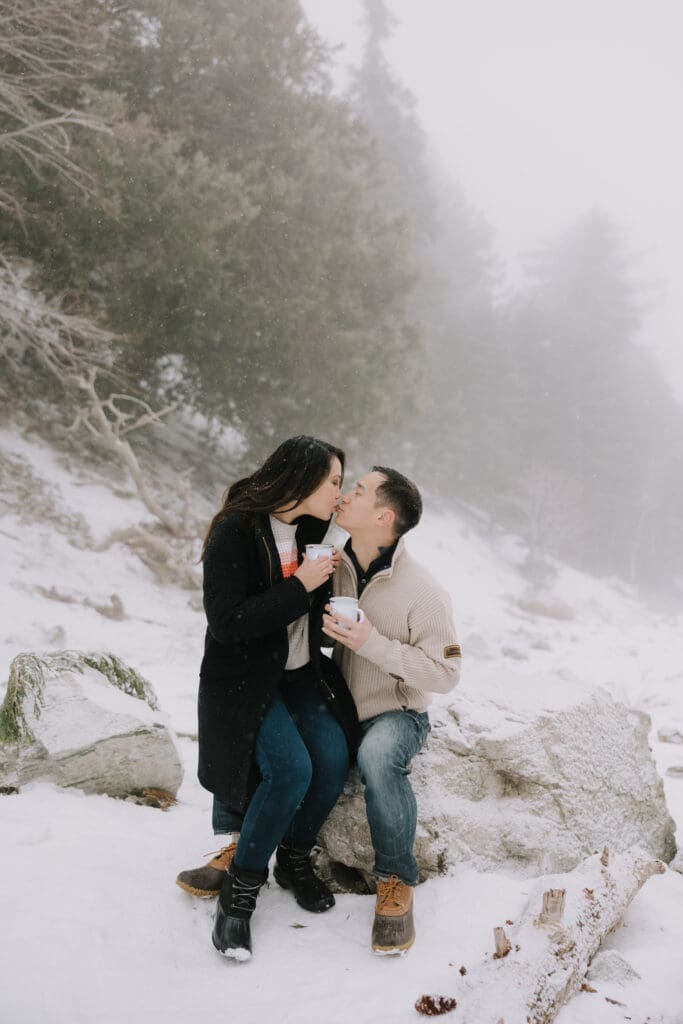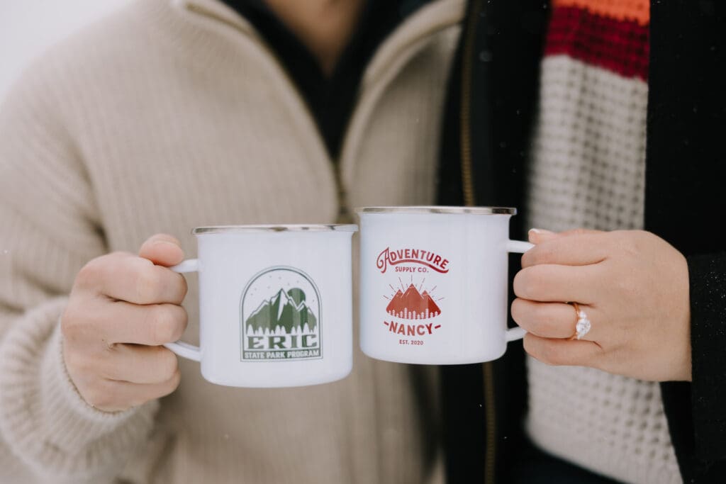Nancy and Eric share a deep passion for exploring the great outdoors. Whether they are packing up camping gear or hiking into the wilderness to sleep under the stars, they are happiest in nature. When it came time for their snowy woodsy engagement session, they knew they wanted to capture this shared love for the wild.