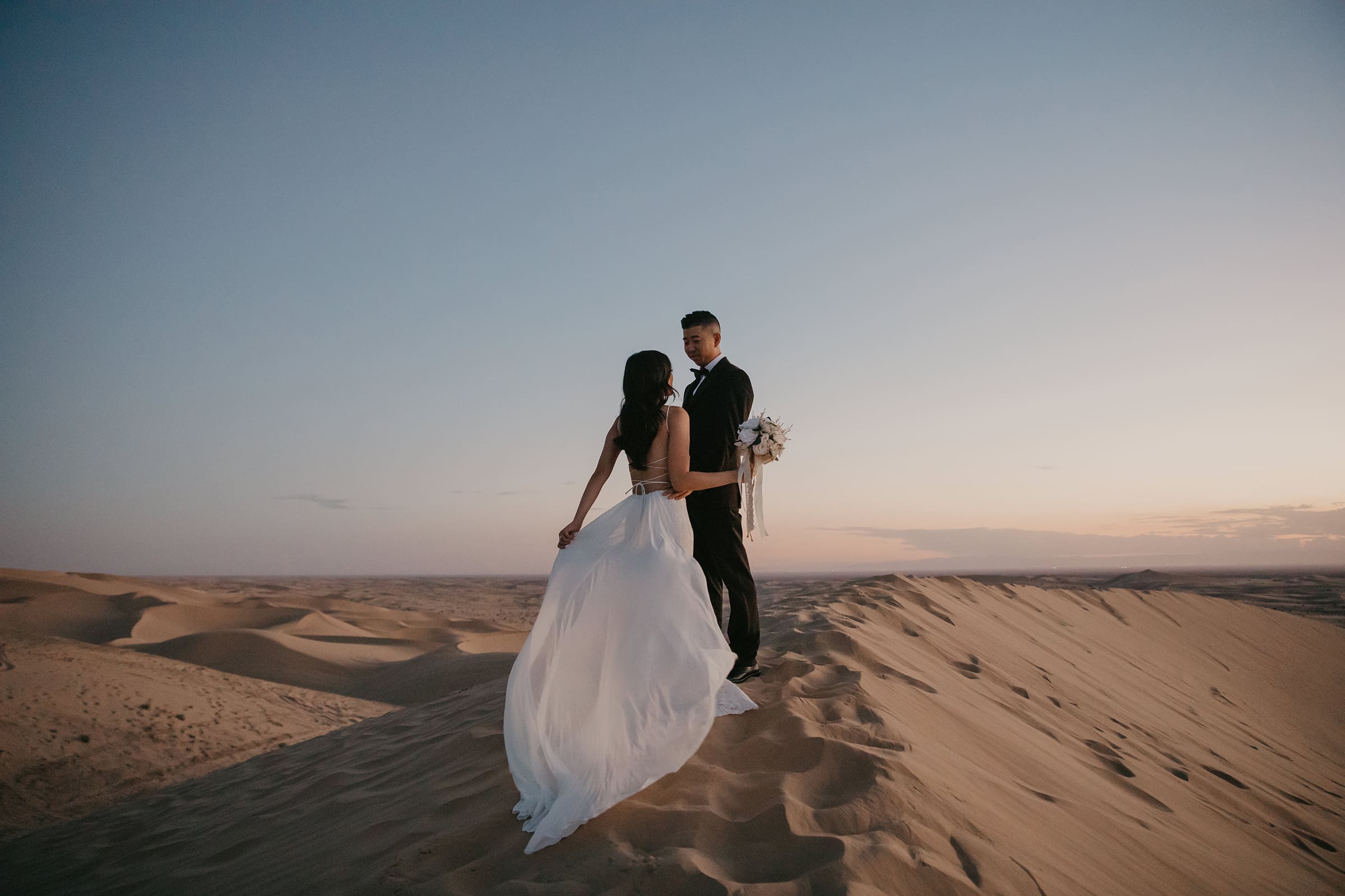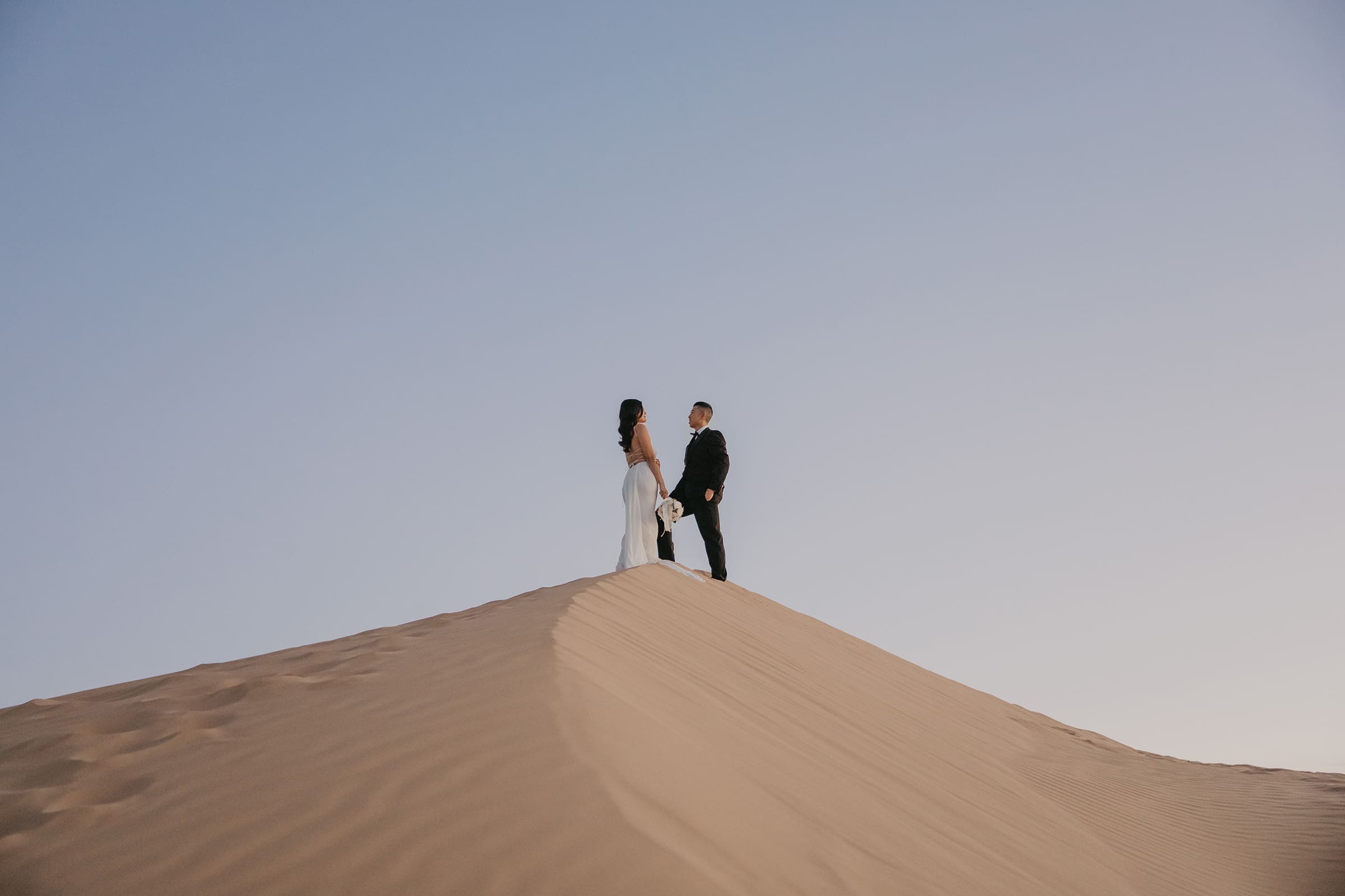 Sunset Shadows & Endless Dunes: Vicky and Jon’s Epic Desert Engagement