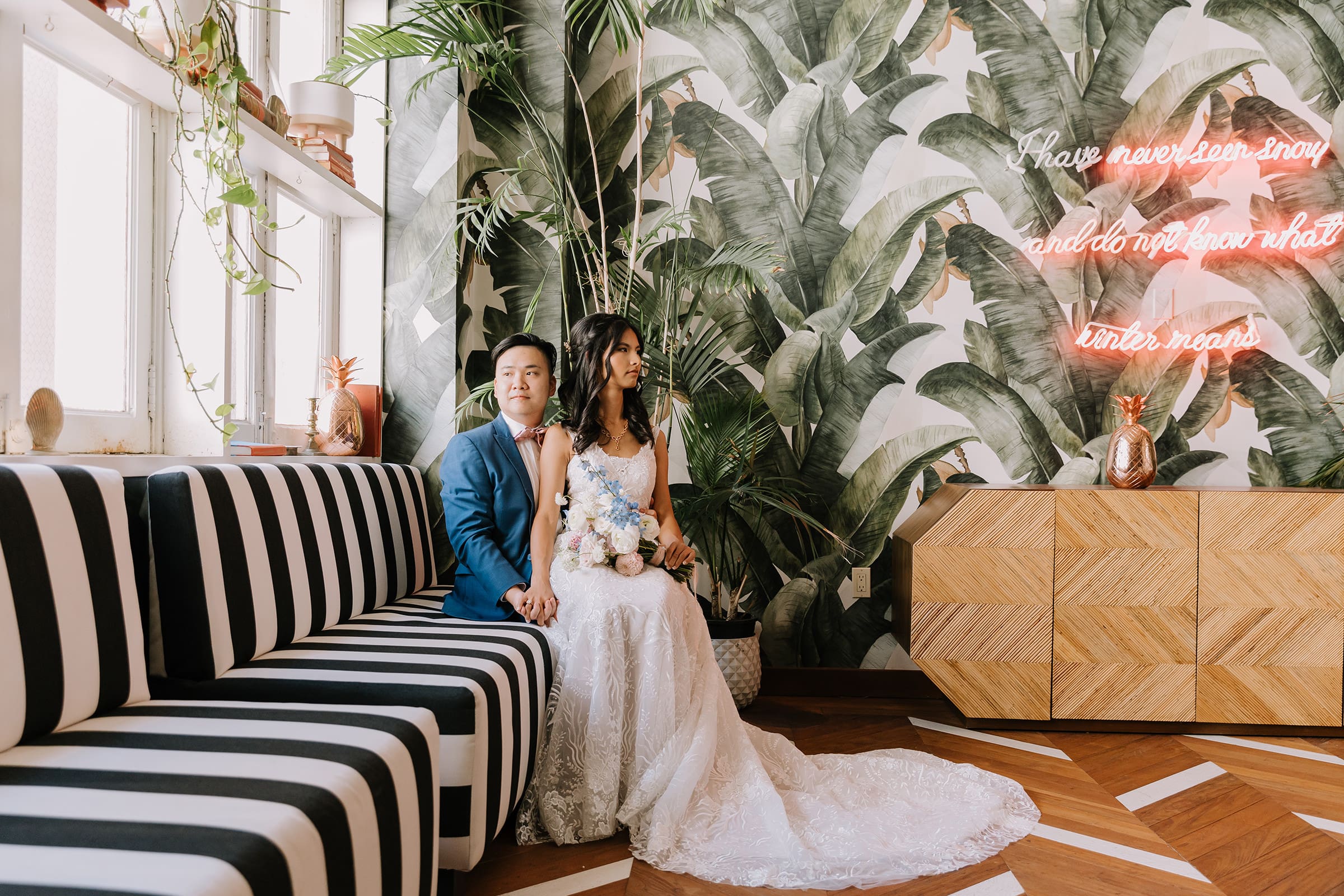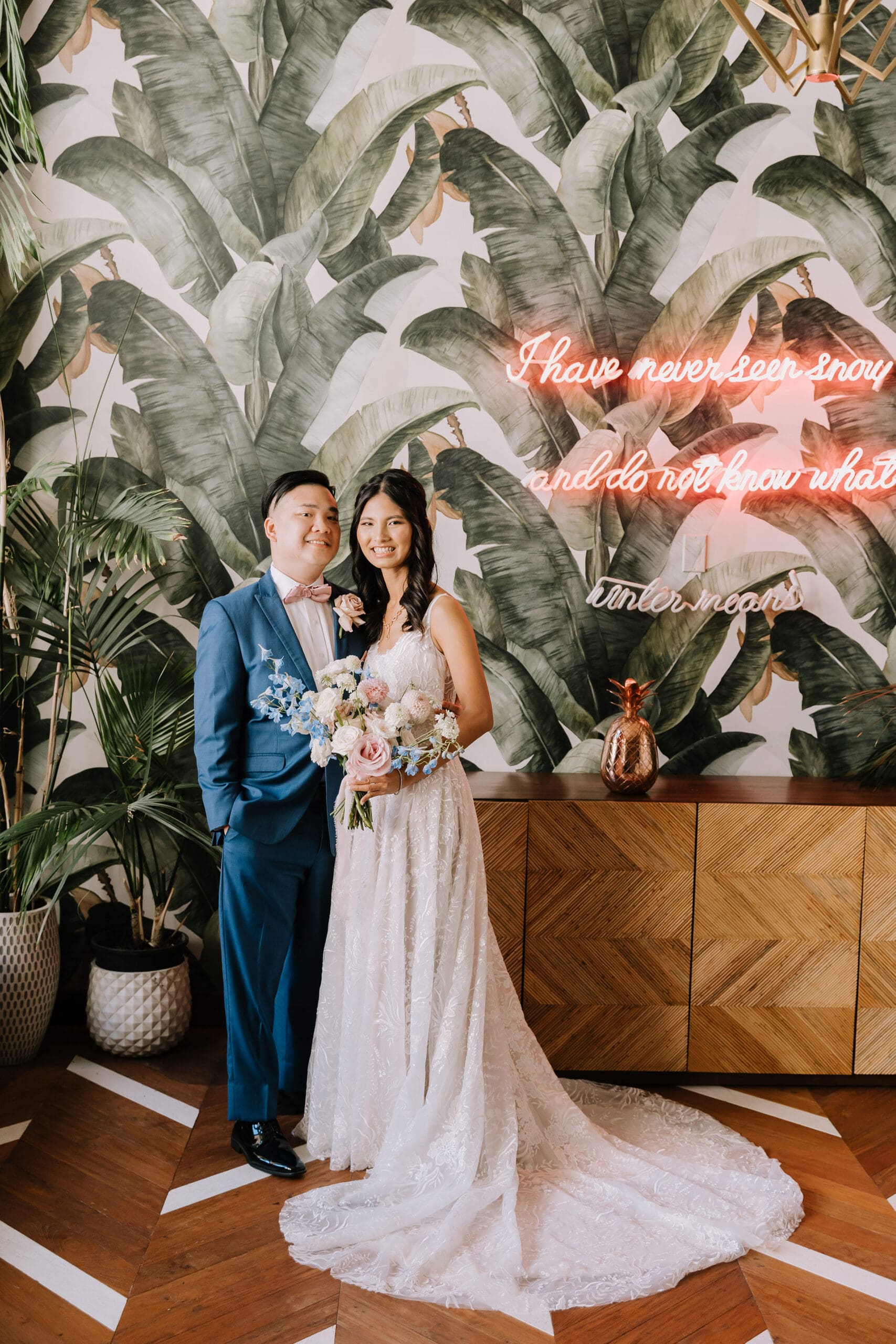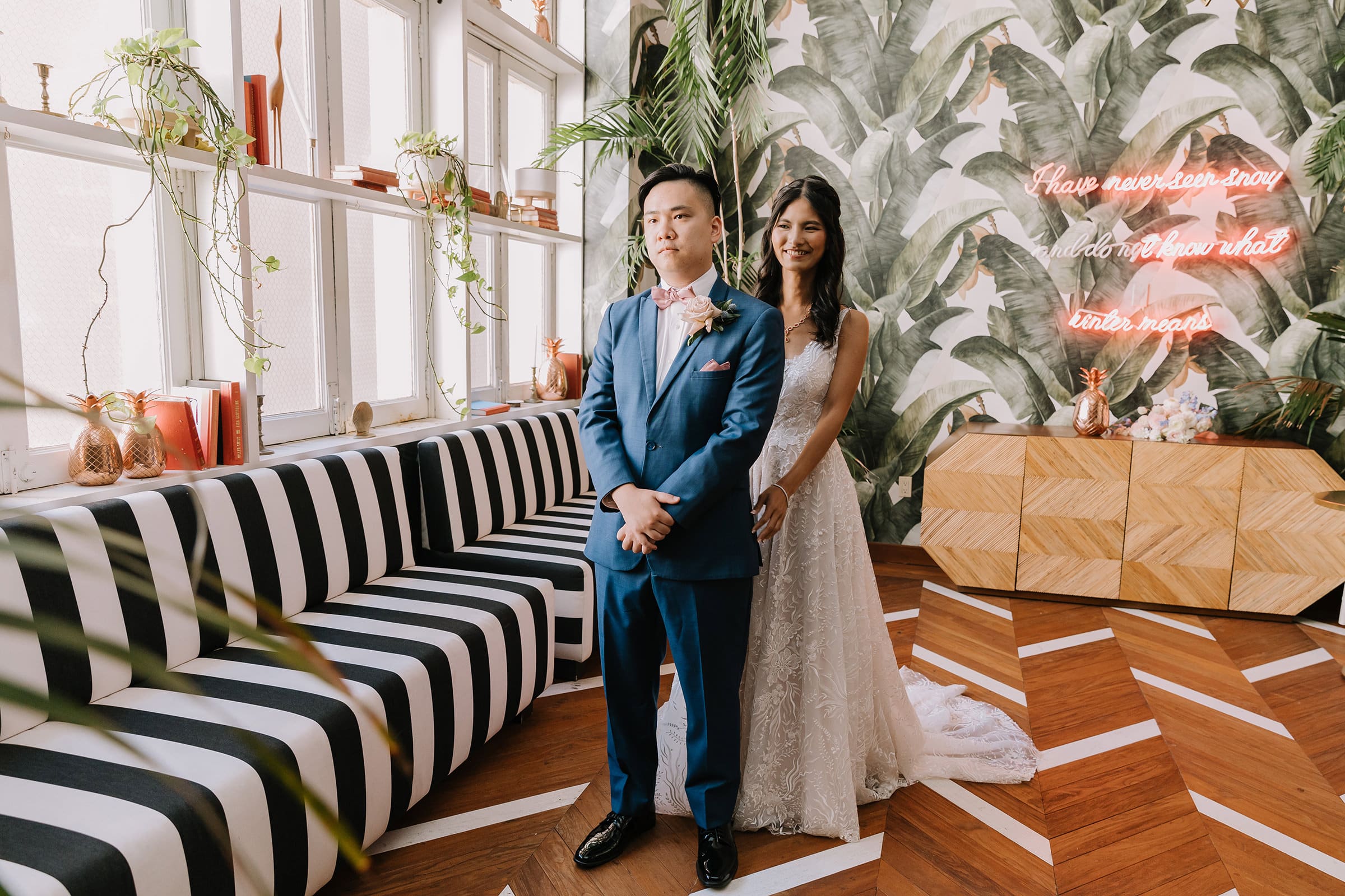 What truly sets a Los Angeles Athletic Club wedding apart is the seamless blend of past and present. Couples can host ceremonies and receptions indoors amid architectural beauty, then transition to one of DTLA’s most impressive rooftops for sunset or evening portraits. The panoramic views of towering skyscrapers create a dramatic, cinematic backdrop that’s quintessentially Los Angeles.
