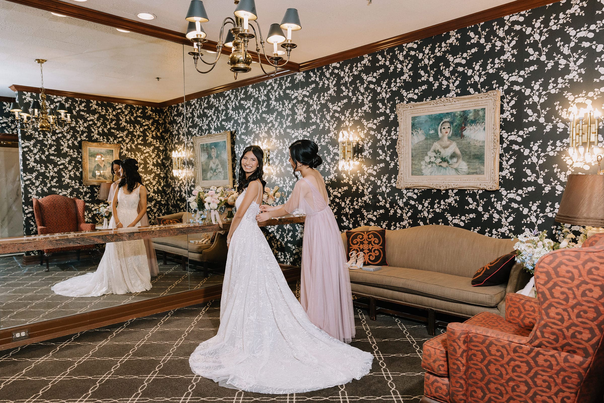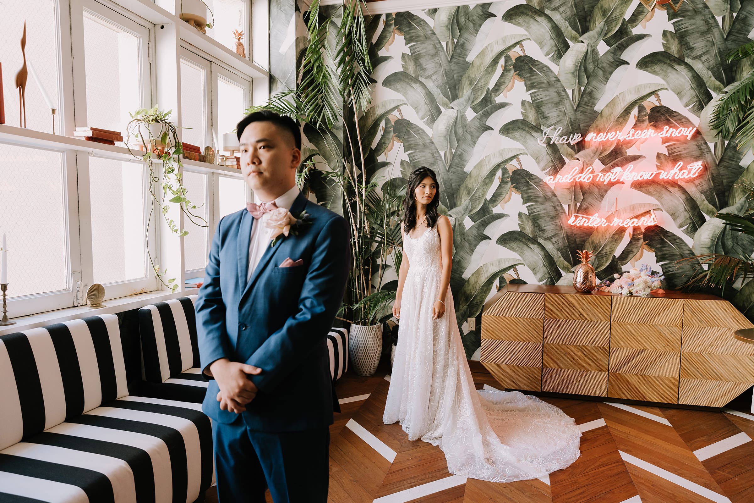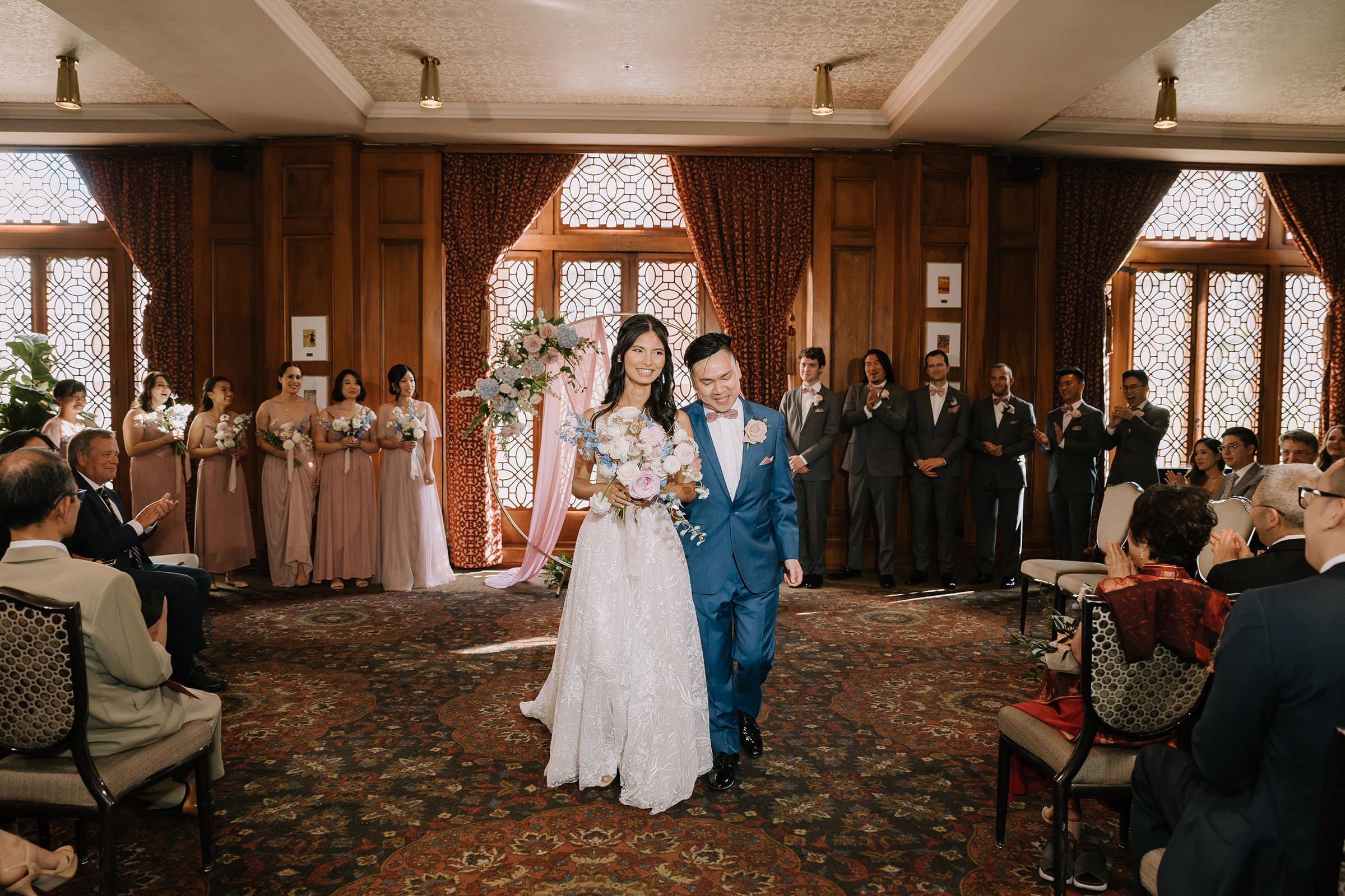 What truly sets a Los Angeles Athletic Club wedding apart is the seamless blend of past and present. Couples can host ceremonies and receptions indoors amid architectural beauty, then transition to one of DTLA’s most impressive rooftops for sunset or evening portraits. The panoramic views of towering skyscrapers create a dramatic, cinematic backdrop that’s quintessentially Los Angeles.