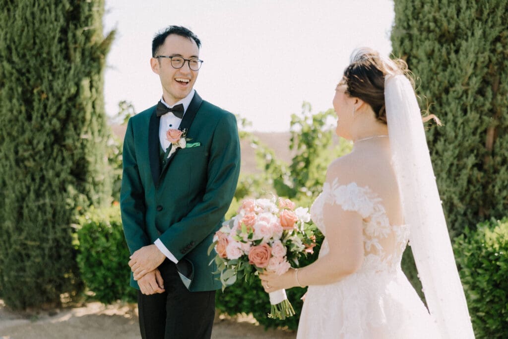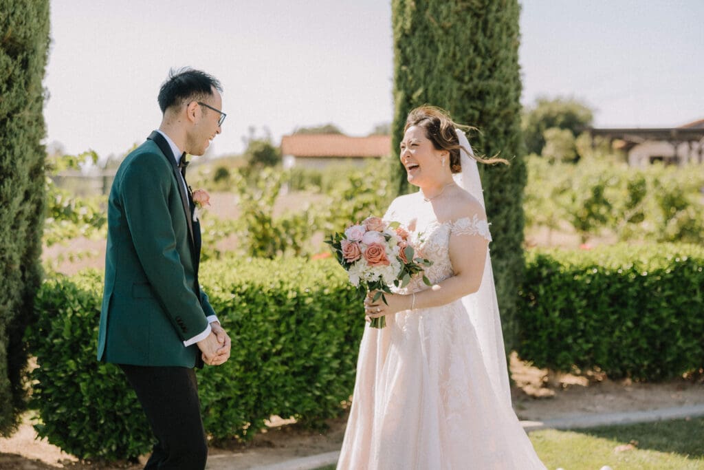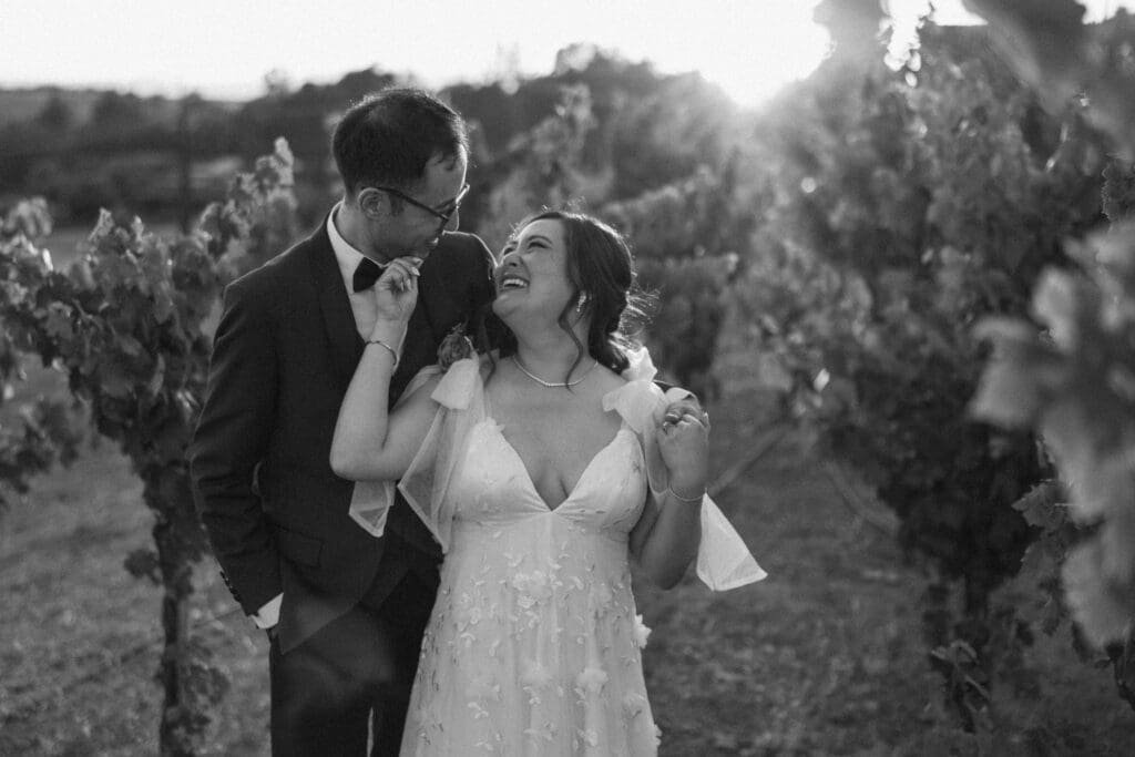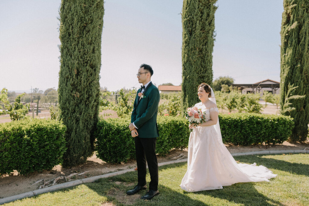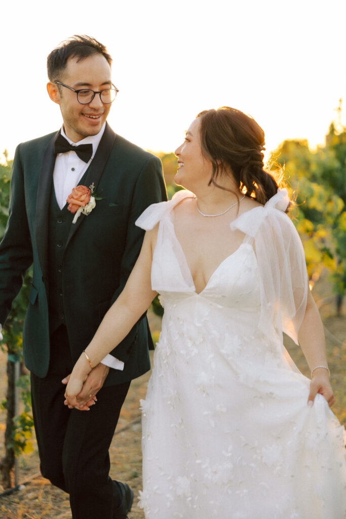The day was filled with glowing light and effortless style. First, Nancy and Chris shared a private moment in the vines. Afterward, they joined their guests for a celebration that felt both grounded and elegant. Because the scenery at Truffle Pig is so naturally stunning, we kept the portraits focused on their connection and the vast valley views.