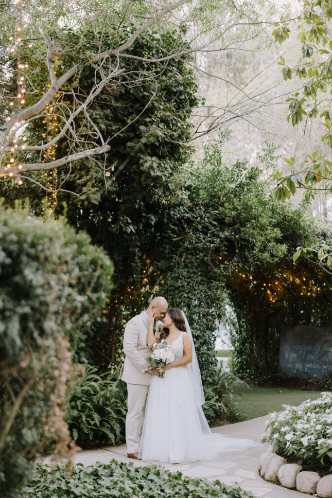 The wedding day began with an intimate ceremony under a canopy of green foliage. Afterward, the couple explored the winding stone paths for their formal portraits. Because the venue filters the sunlight through dense gardens, we captured a soft, ethereal glow in every photograph. Furthermore, the ivy-covered gates and antique furniture added a layer of sophistication to the entire gallery.