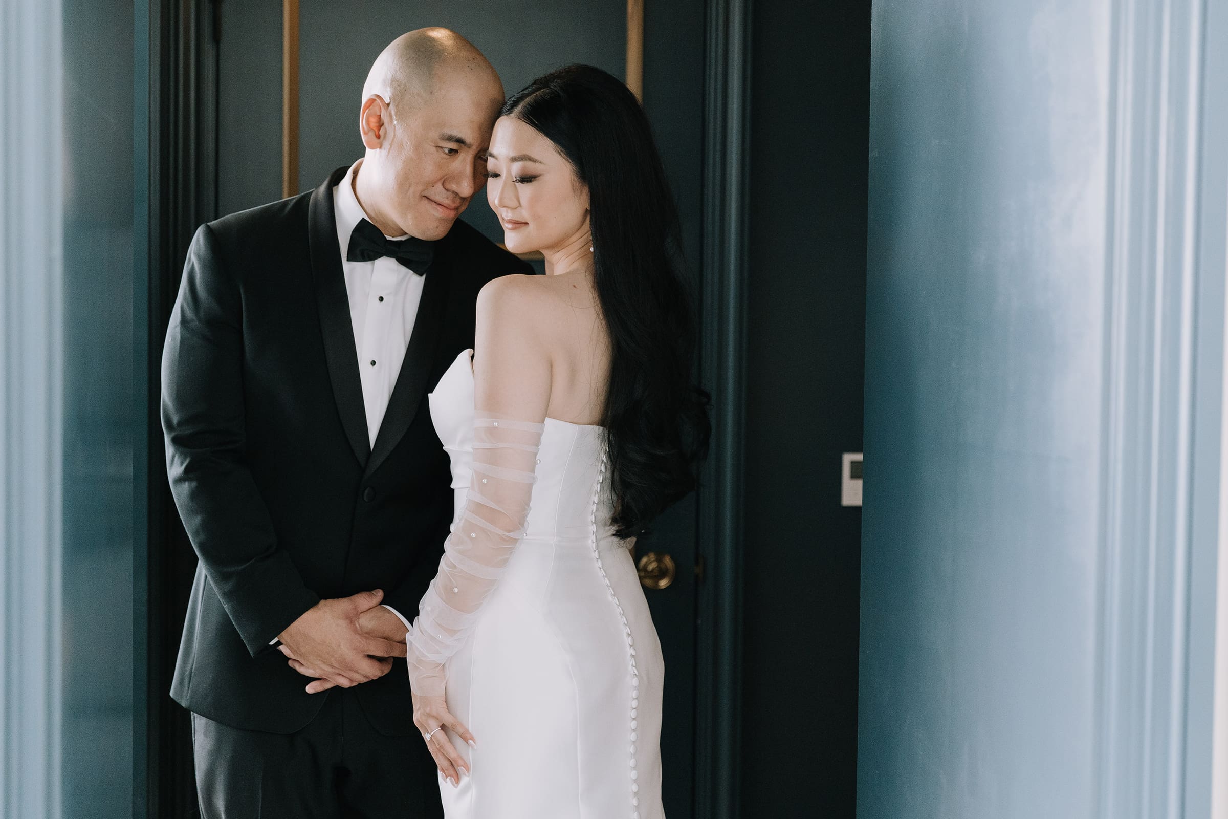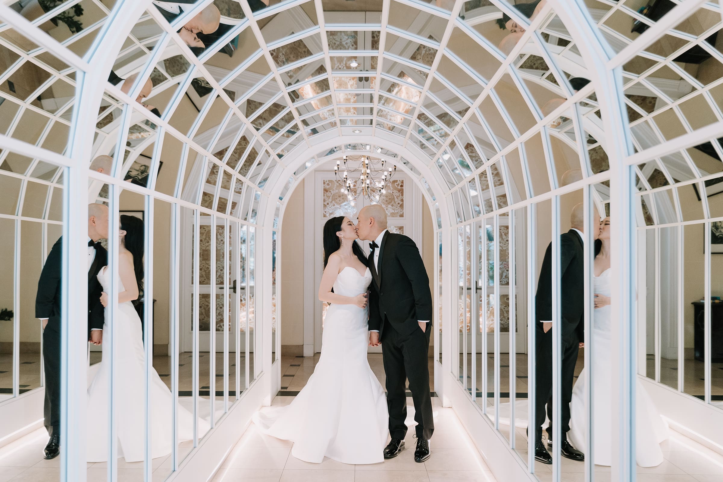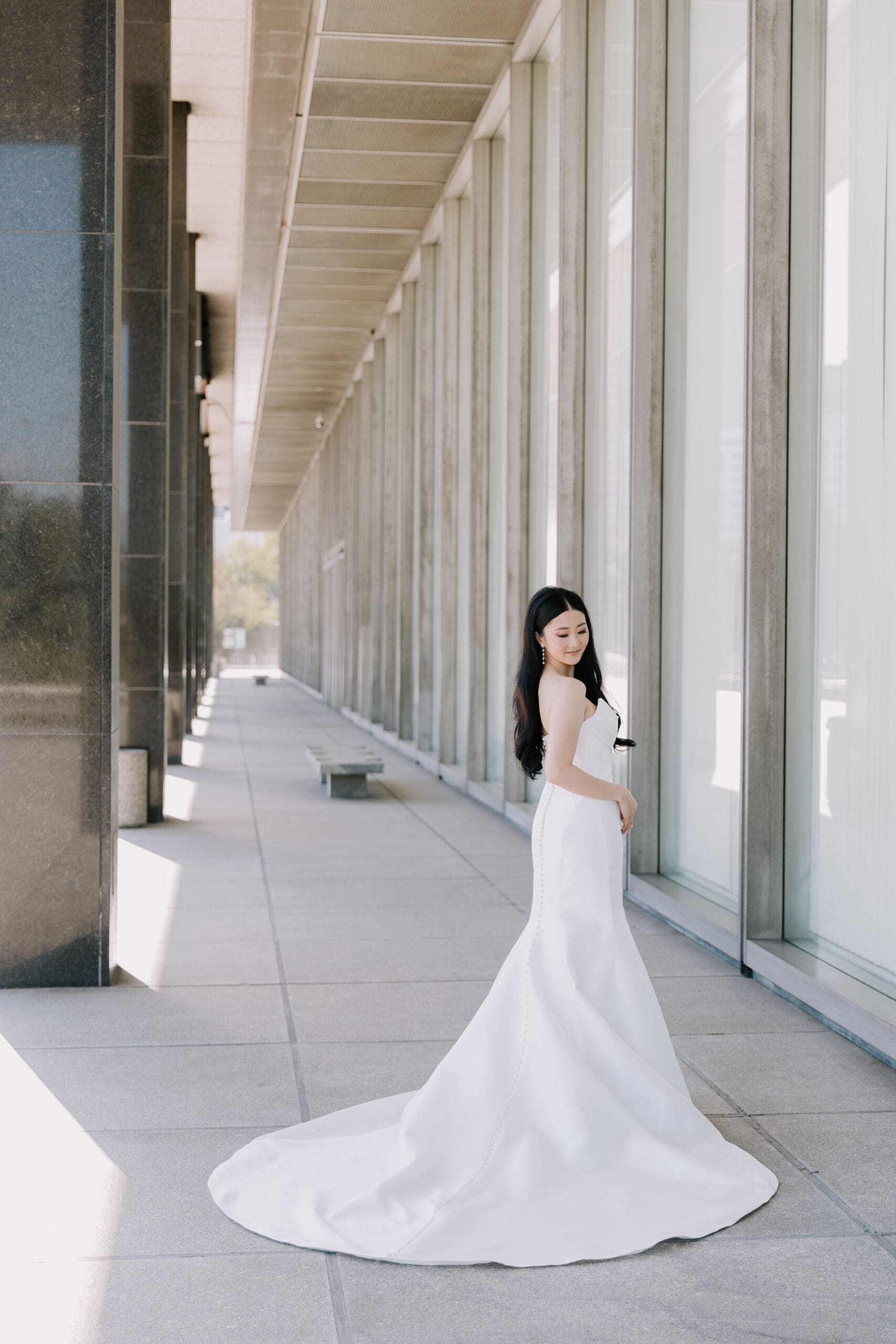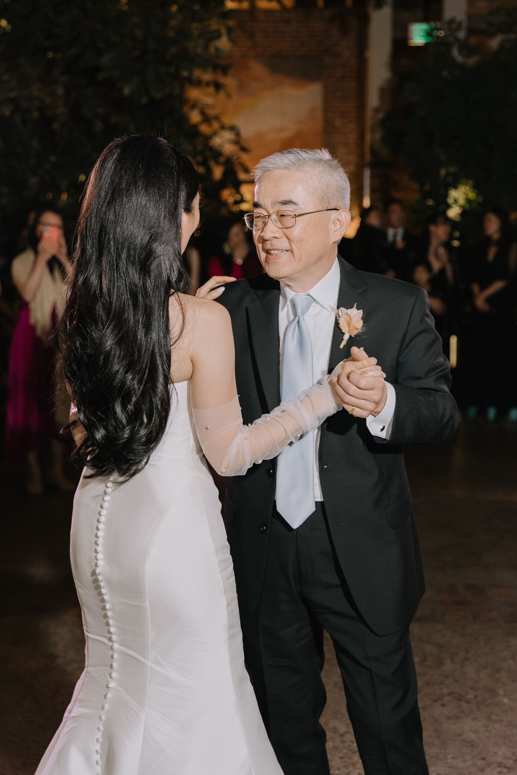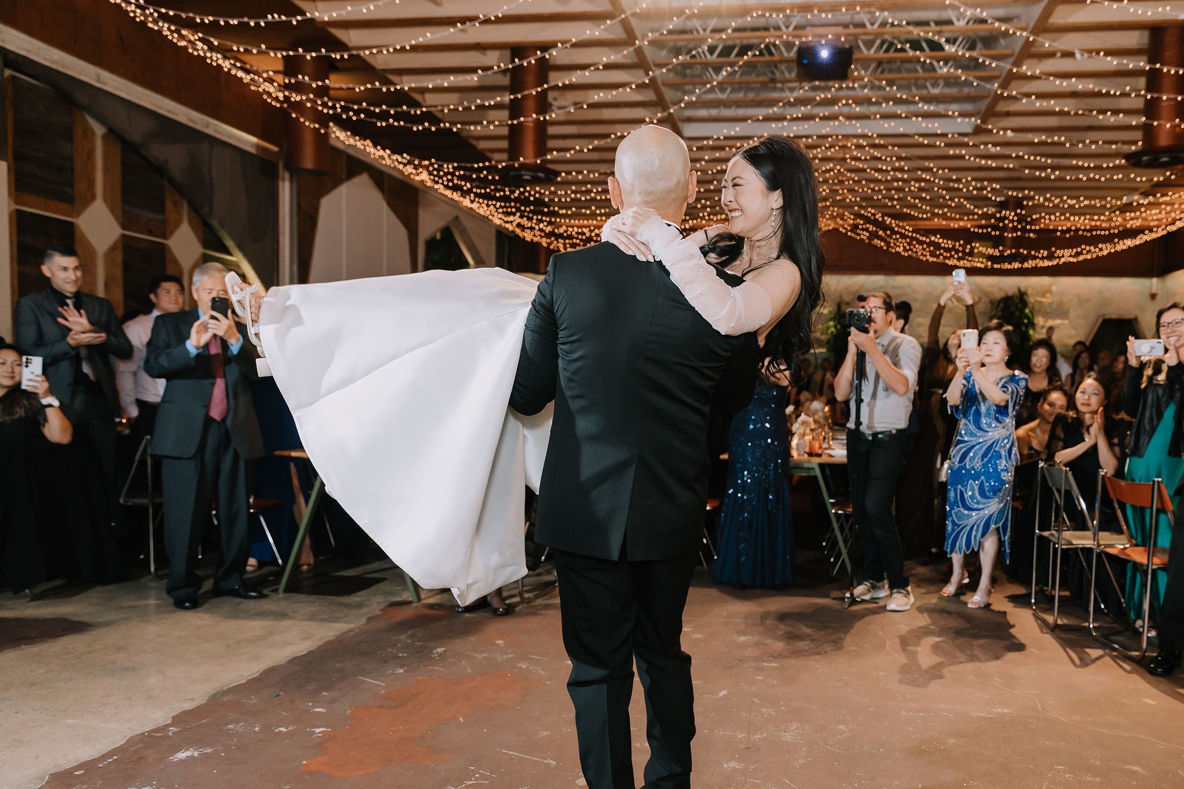 As the sun dipped below the skylights, casting a warm glow over the courtyard, Tiffany and Alan’s love story entered a new chapter. The twinkly lights in the reception area mimicked a starry night sky, creating an intimate and romantic ambiance. The laughter of friends and family, the clinking of glasses, and the soft whispers of love filled the air, making it a night to remember.