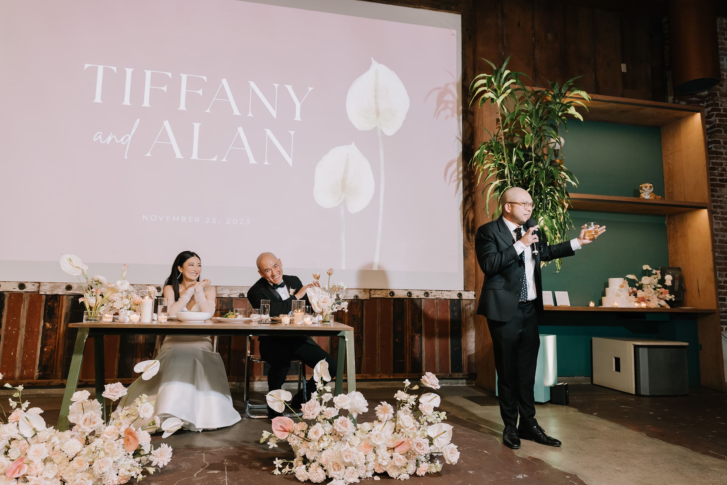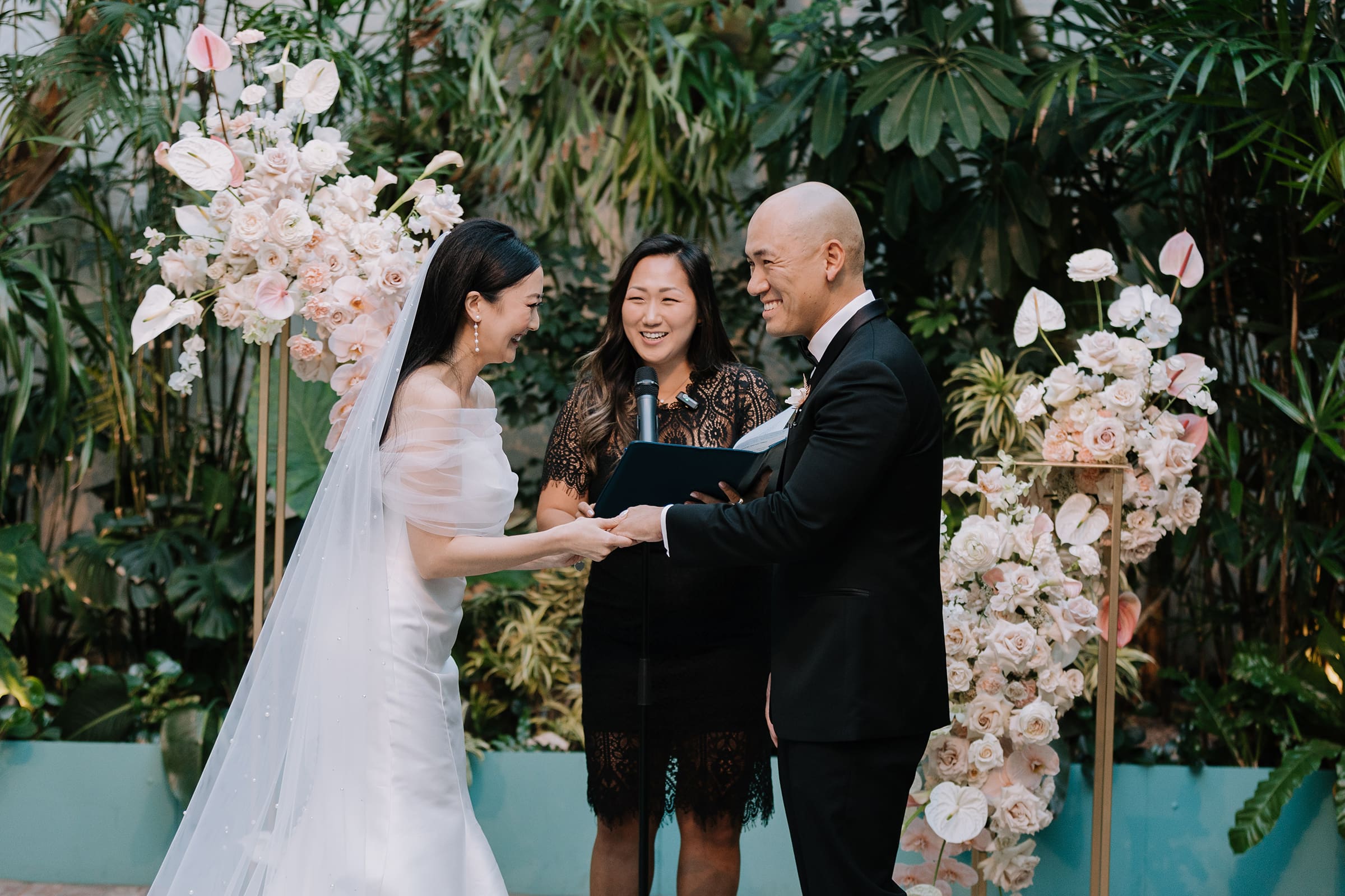The anticipation in the air was palpable as Tiffany and Alan made their way to the greenhouse courtyard at Valentine DTLA. Surrounded by lush greenery and vibrant blossoms, the couple exchanged vows in an intimate ceremony that mirrored the enchanting beauty of their love.
