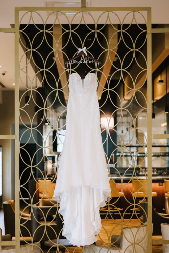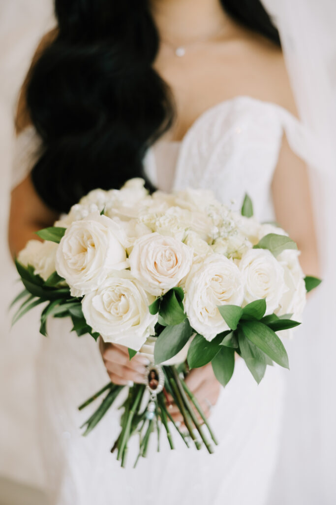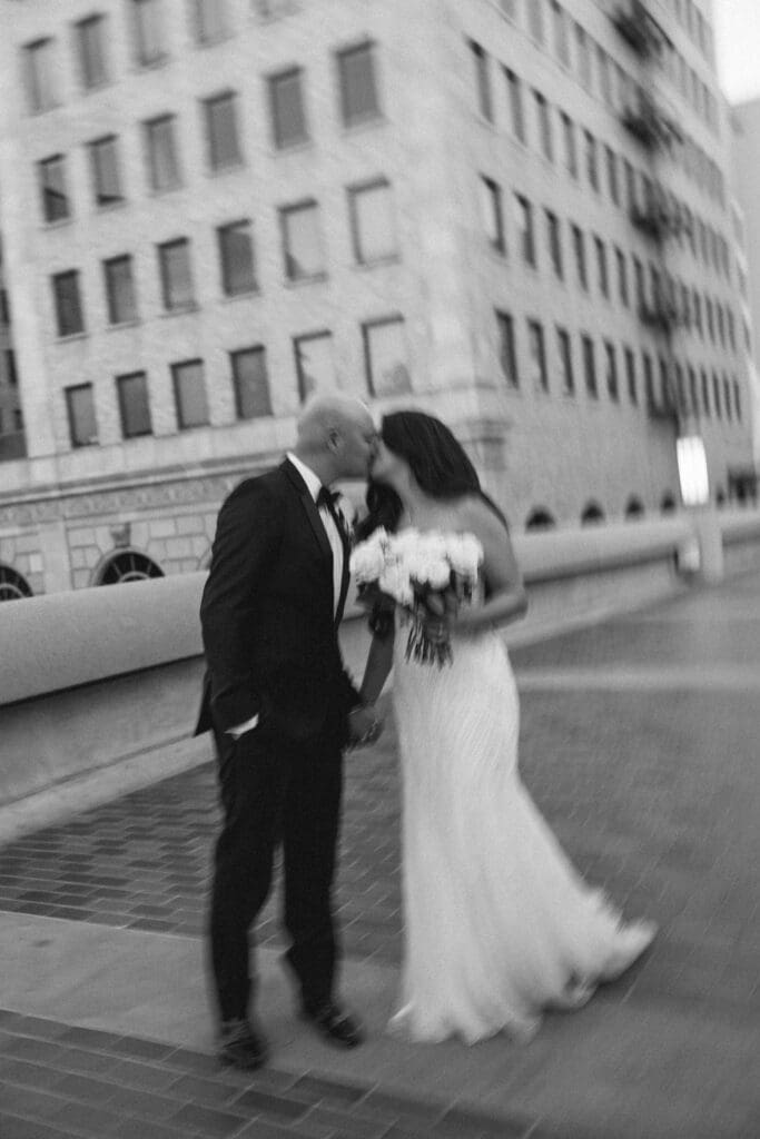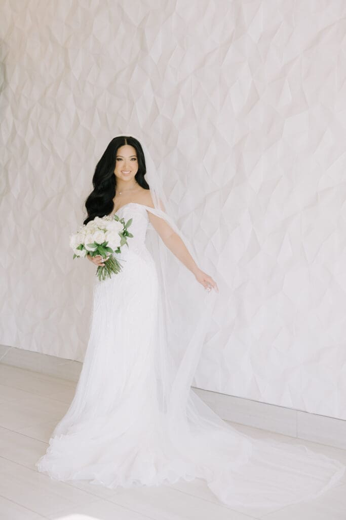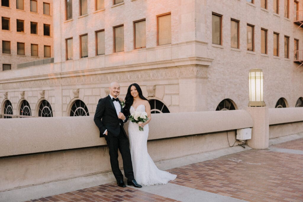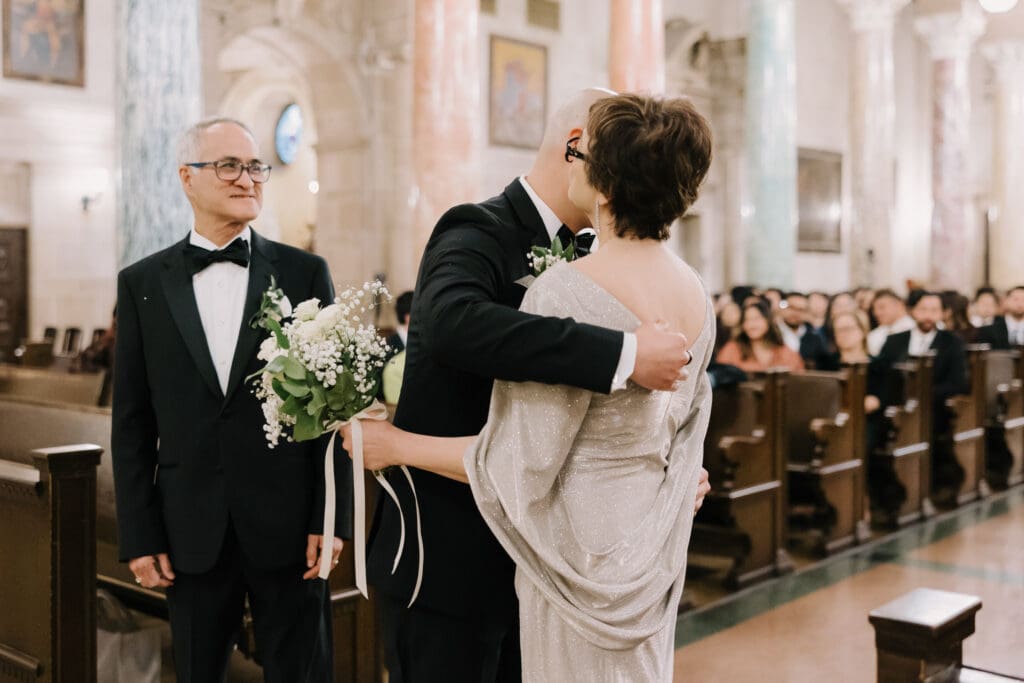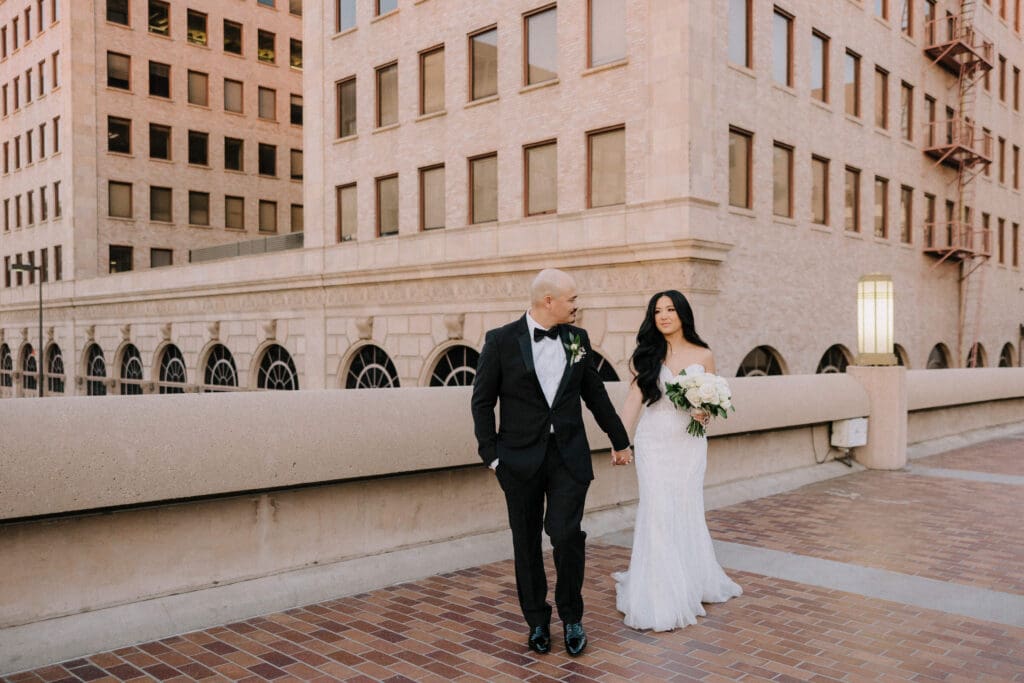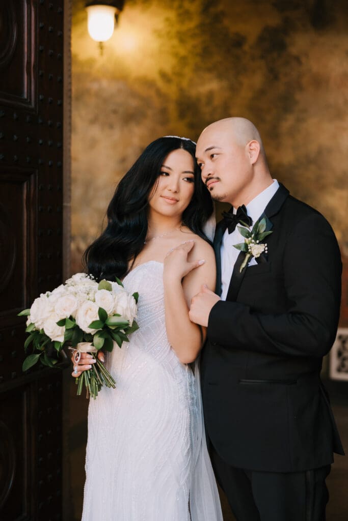 First, the couple chose to exchange vows at St. Andrew’s Catholic Church. This location is famous for its Romanesque architecture. It features a soaring bell tower and beautiful murals. Therefore, it provided an “old world” feeling for their ceremony. Because the church is so historic, it added an immediate sense of timelessness to their wedding gallery.
