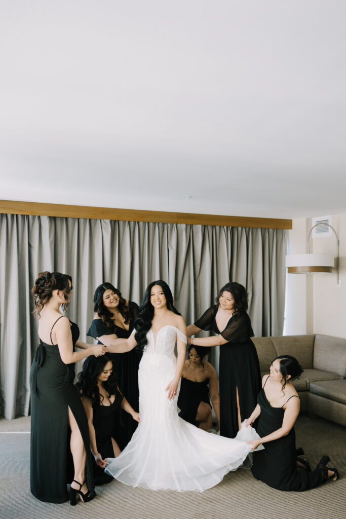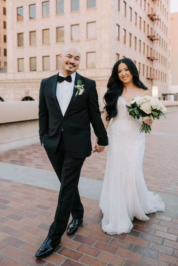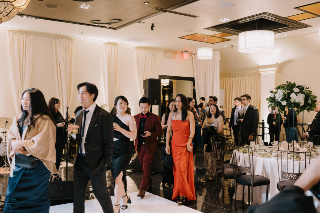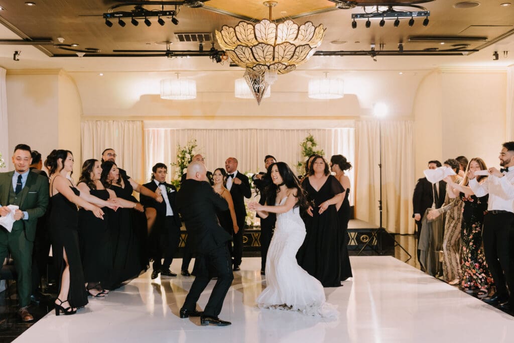 After the ceremony, the celebration moved to NOOR. This boutique event space is located in the heart of Pasadena. It is a premier venue that blends historic charm with modern luxury. For example, the Sofia Ballroom offers elegant chandeliers and dark wood accents. Meanwhile, the outdoor terrace provides a lovely urban breeze.
